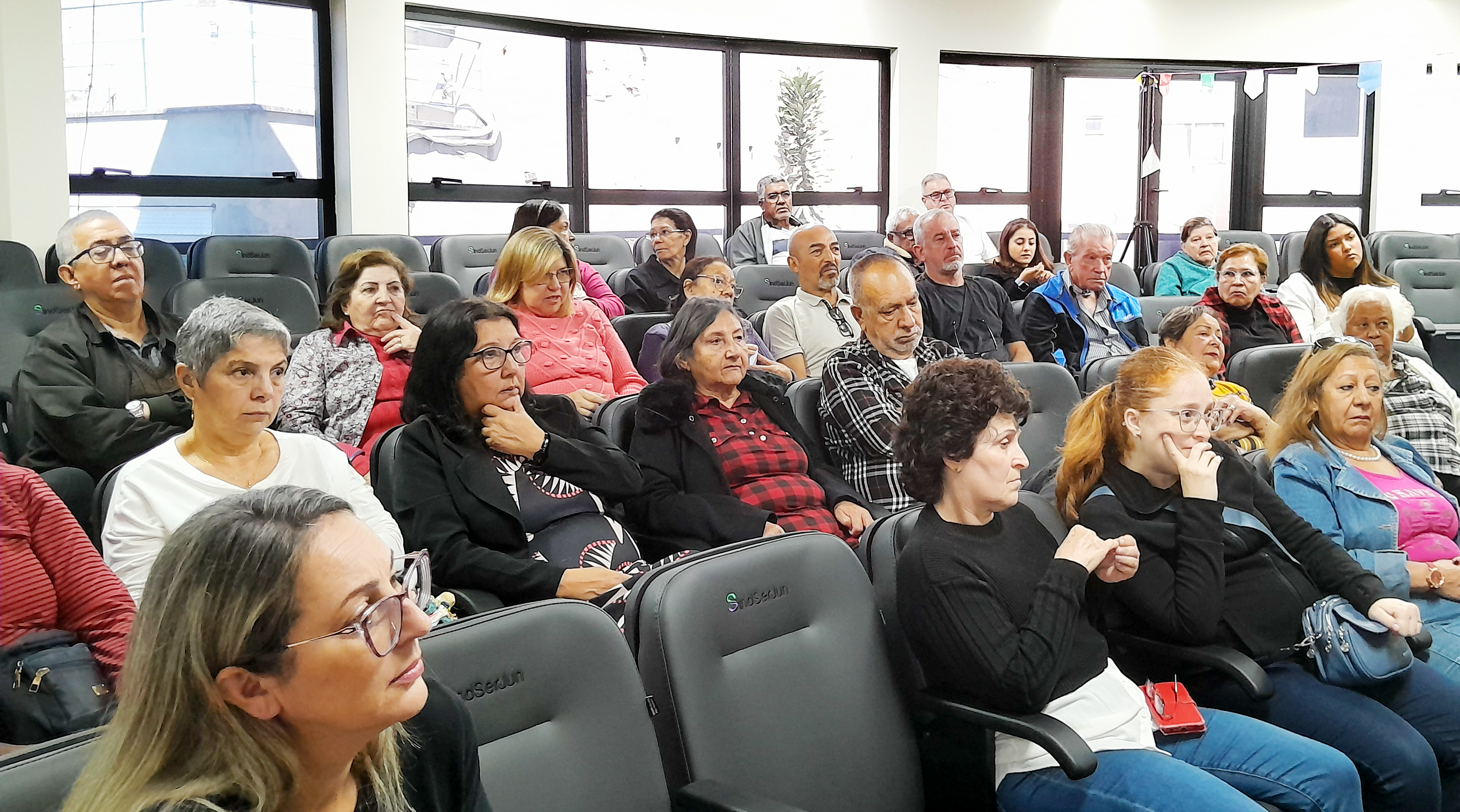 O evento também contou com a presença das representantes Paula e Michele, da Pentágono/Sobam, e de Ricardo, da Allcare/Unimed, que esclareceram dúvidas sobre planos de saúde e ofereceram orientações voltadas ao público Aposentado.