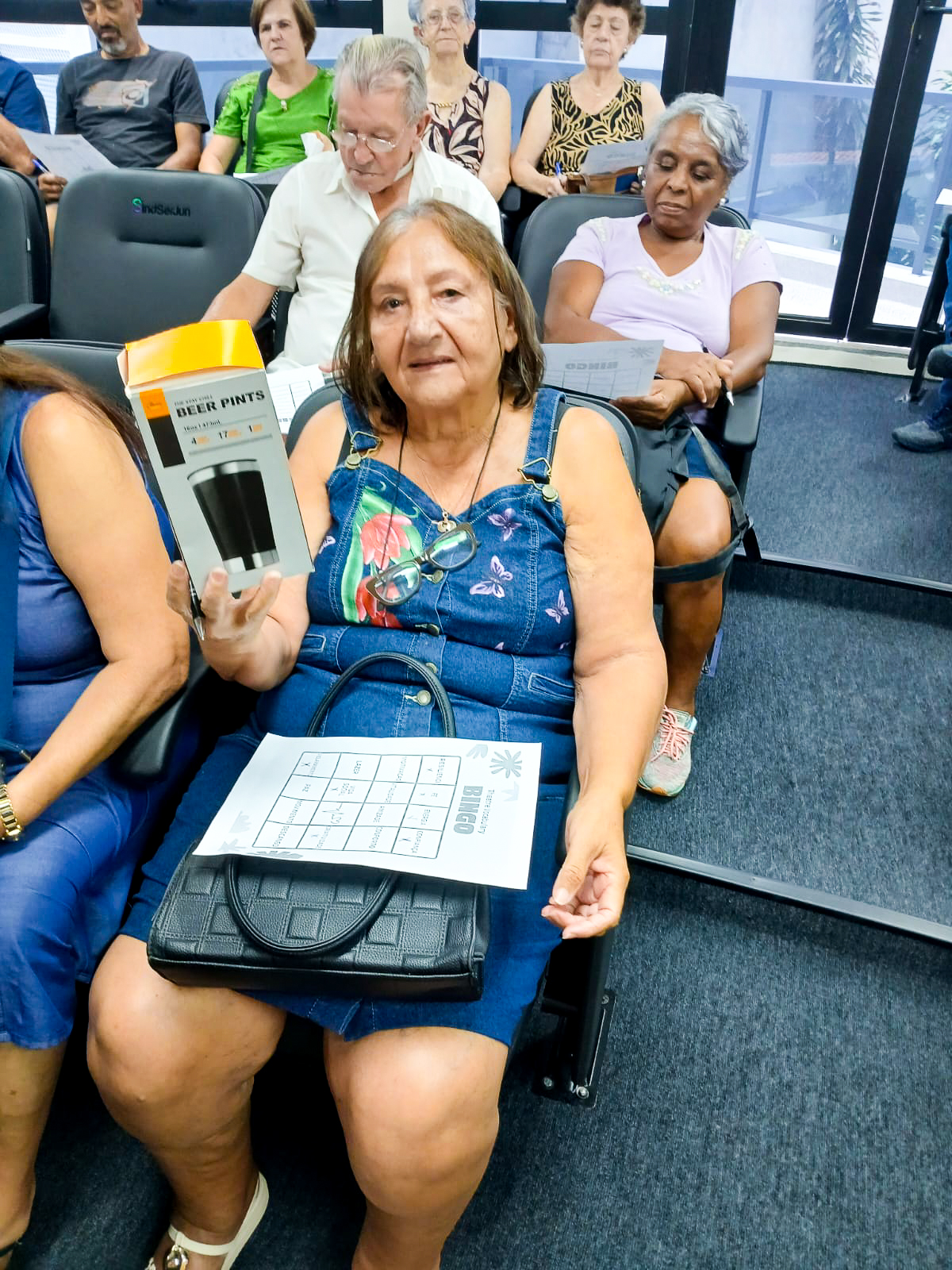 Além dos deliciosos comes e bebes que sempre caracterizam nossos encontros, desta vez promovemos uma ação diferenciada e muito especial: o “Bingo da Saúde”. Sob a condução da nossa querida Enfermeira Graziela Fabiane Souza Munarin, em vez de números, foram sorteadas diferentes emoções como “gratidão”, “esperança” e “saudade”. Os participantes completavam suas cartelas emocionais e concorriam a muitos mimos. Foi um momento leve, divertido e profundamente humano, que arrancou sorrisos e emocionou a todos.