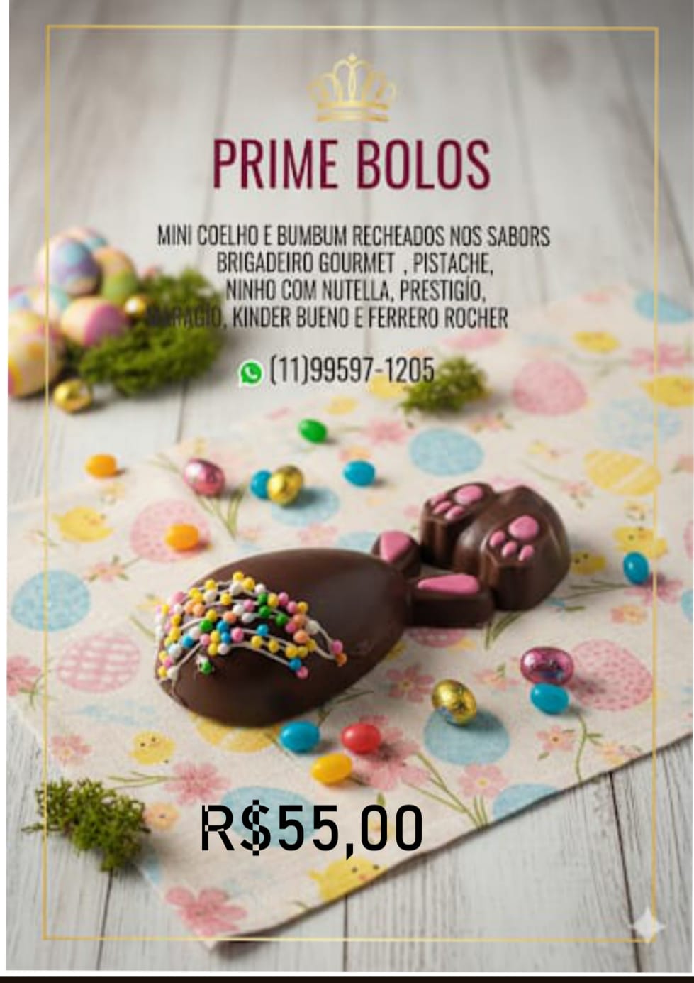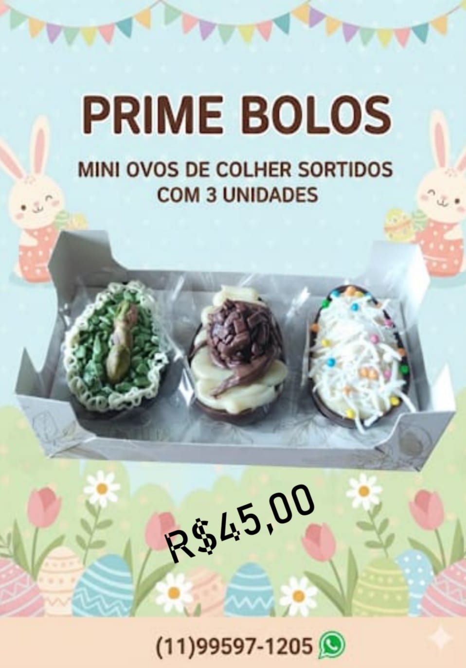 Aproveite essa oportunidade e garanta o seu! Faça sua encomenda pelo WhatsApp (11) 995.971.205. Não perca essa chance de adoçar sua Páscoa. Veja algumas opções logo abaixo!