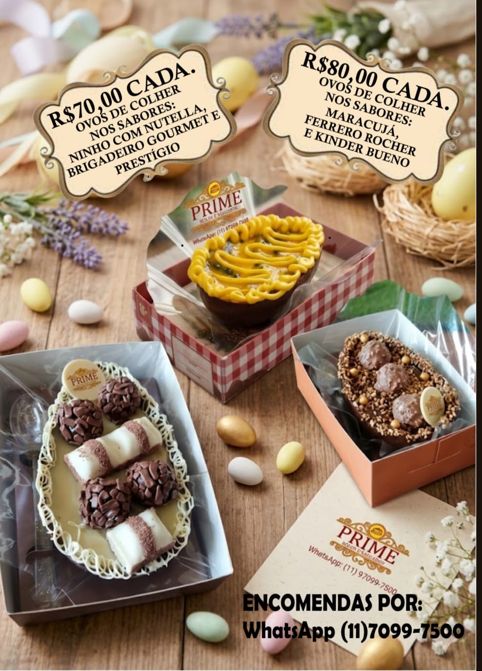 Confira as deliciosas opções de Ovos de Páscoa da Prime Bolos. São preços que cabem no seu bolso!
