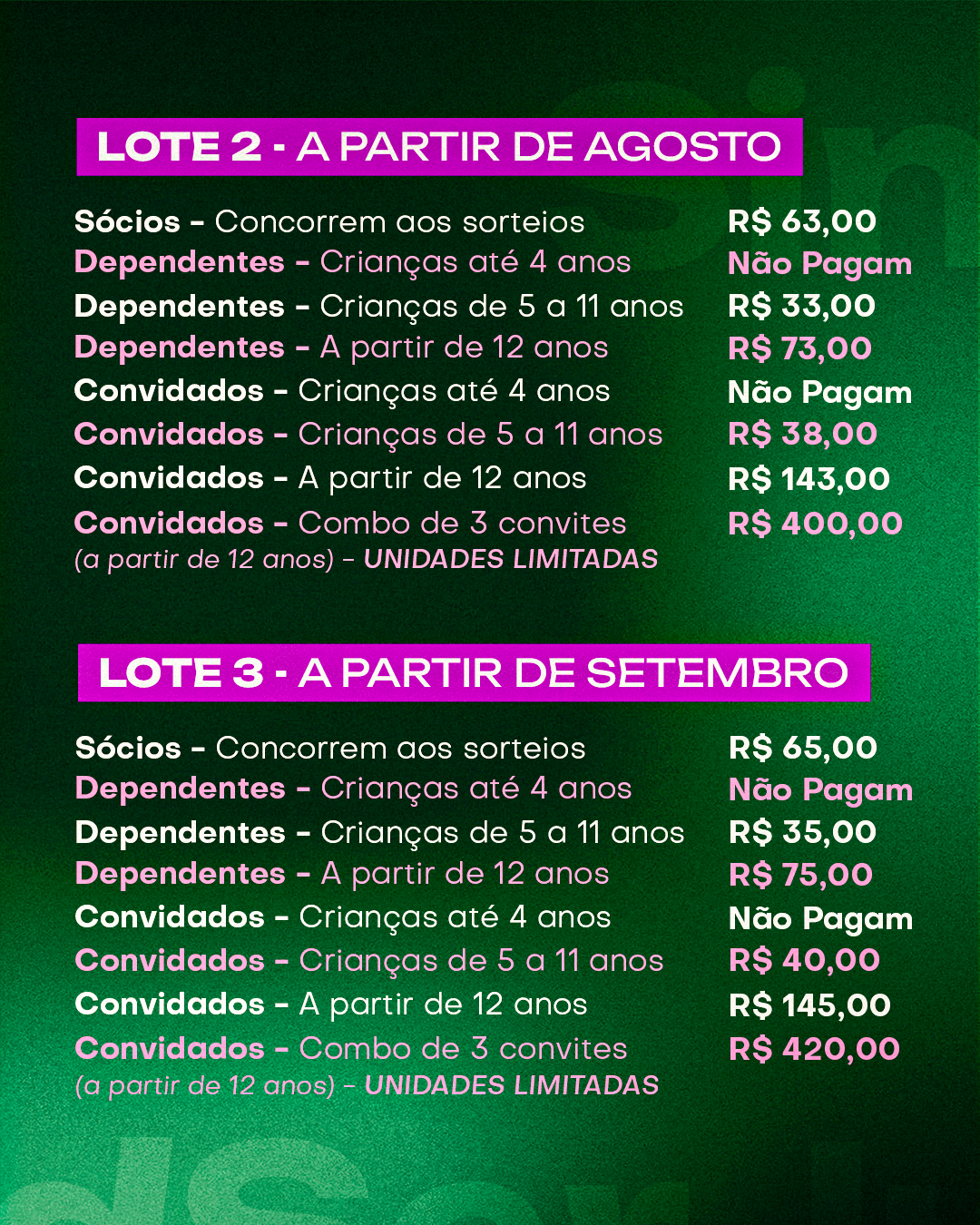 Convidado a partir de 12 anos – R$ 140,00