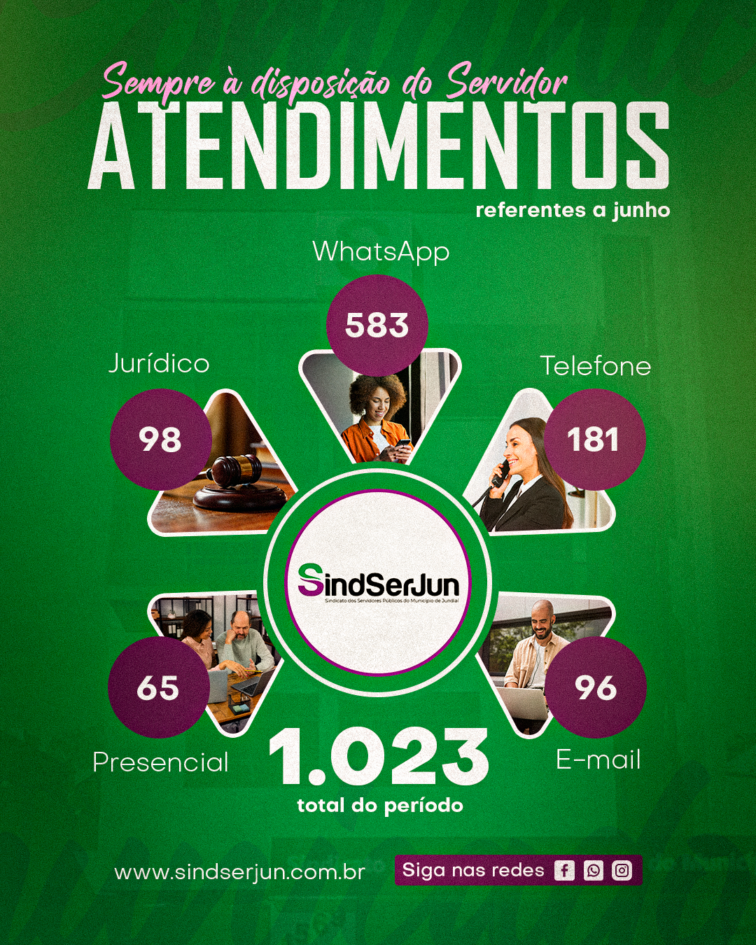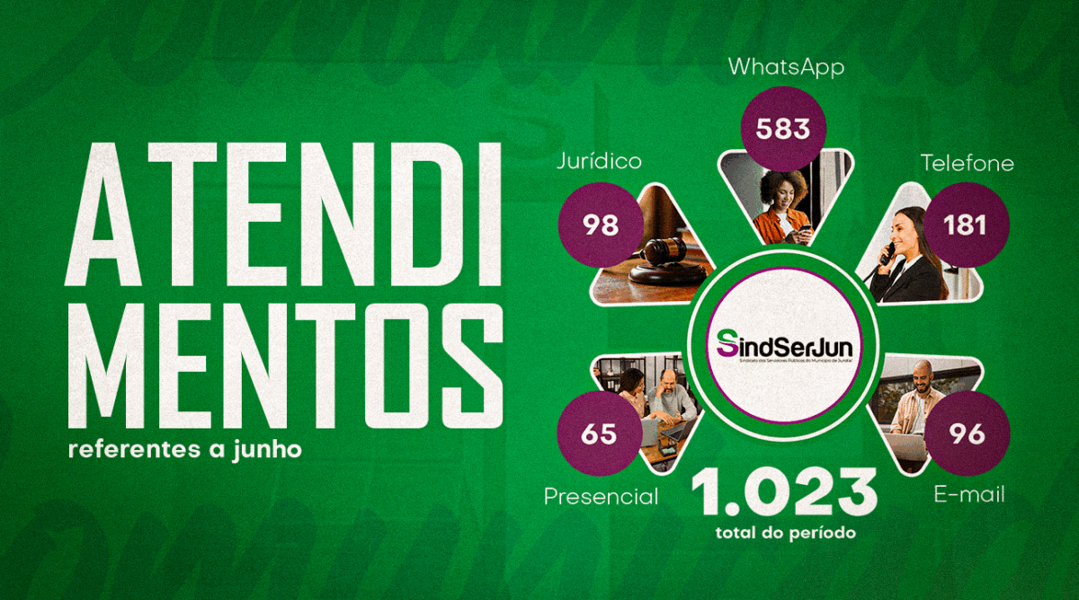 Equipe do SINDSERJUN realiza 1.023 atendimentos no mês de junho. Estamos prontos para te ajudar com eficiência!