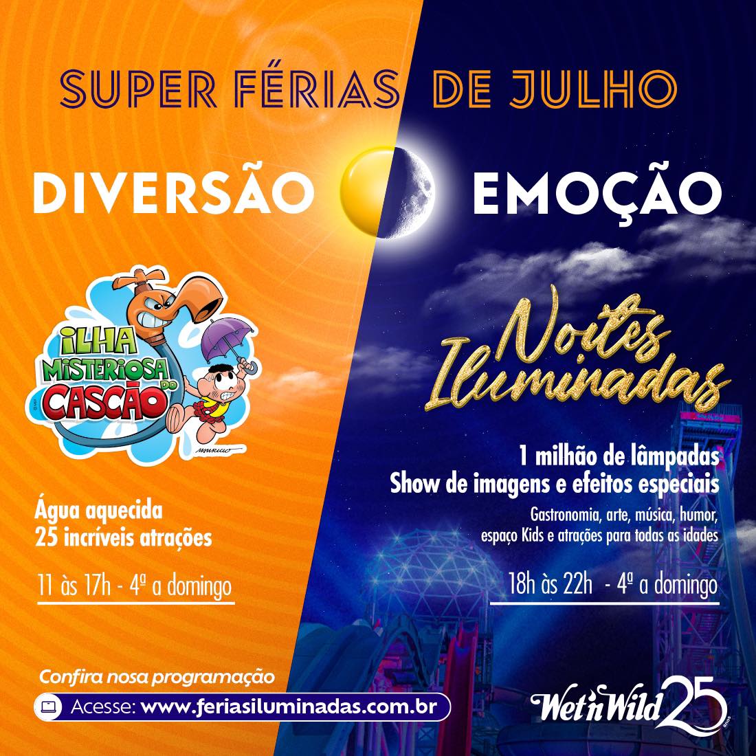 Férias Iluminadas no Wet’n Wild | Sócios aproveitam o parque de graça no dia 21 de julho, a partir das 15 horas