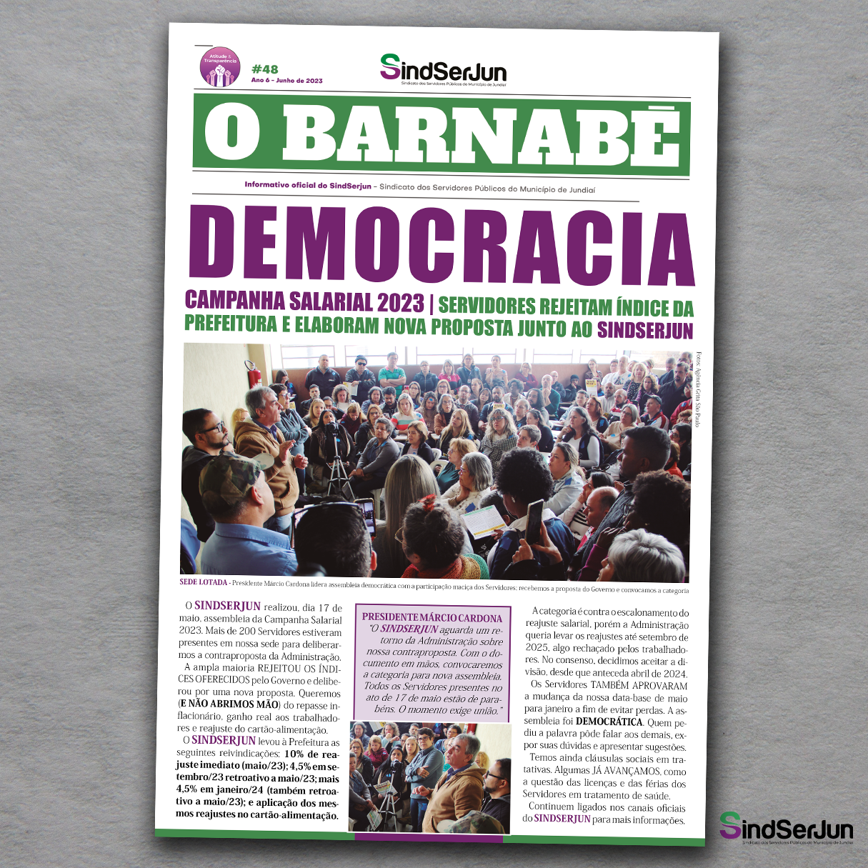 A fim de informar os seus associados e trazer os acontecimentos mais recentes, o SINDSERJUN produziu a 48ª edição do seu jornal mensal – “O Barnabé“. Com quatro páginas, sendo distribuição impressa e digital, a publicação traz importantes ações da entidade junto à categoria em prol de avanços neste momento decisivo de Campanha Salarial.