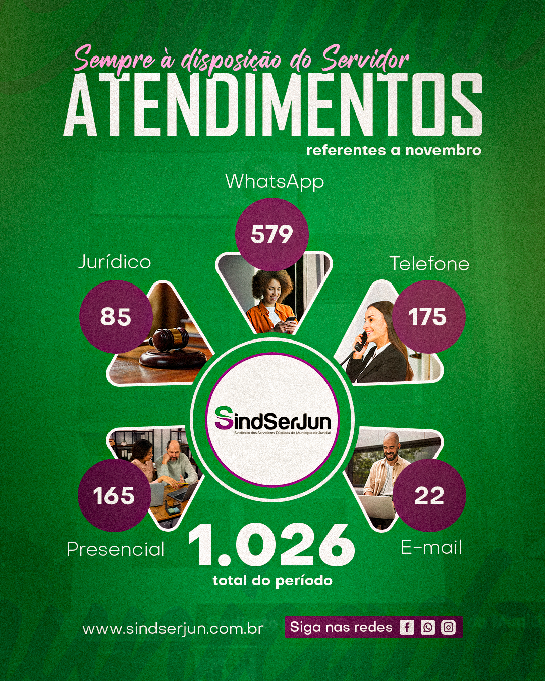 Esses números não são apenas estatísticas, mas representam histórias, dúvidas sanadas e direitos preservados. O trabalho do SINDSERJUN segue firme, renovando a cada dia o compromisso com a categoria.