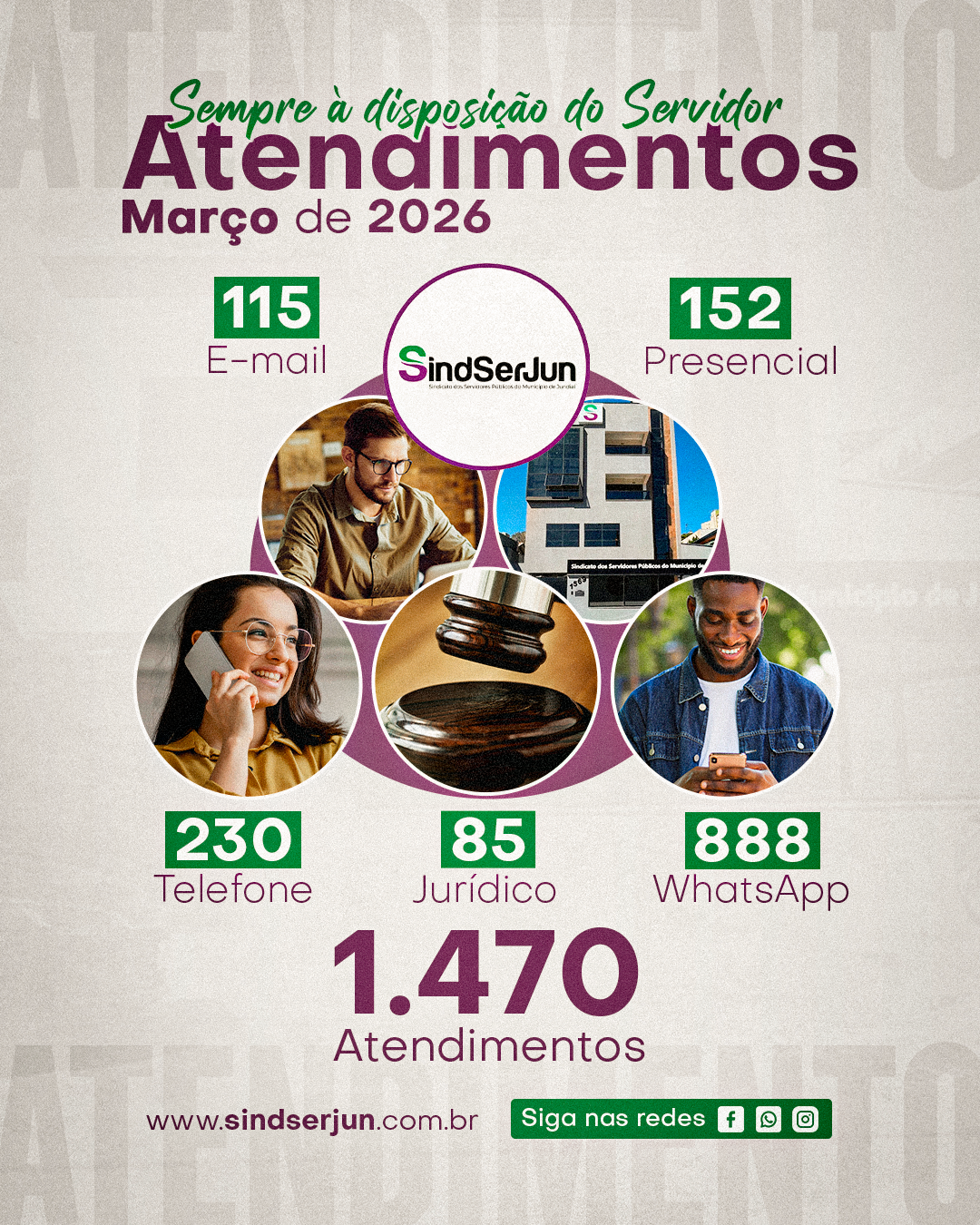 Tivemos mais um mês produtivo. SINDSERJUN alcança 1.470 atendimentos em março