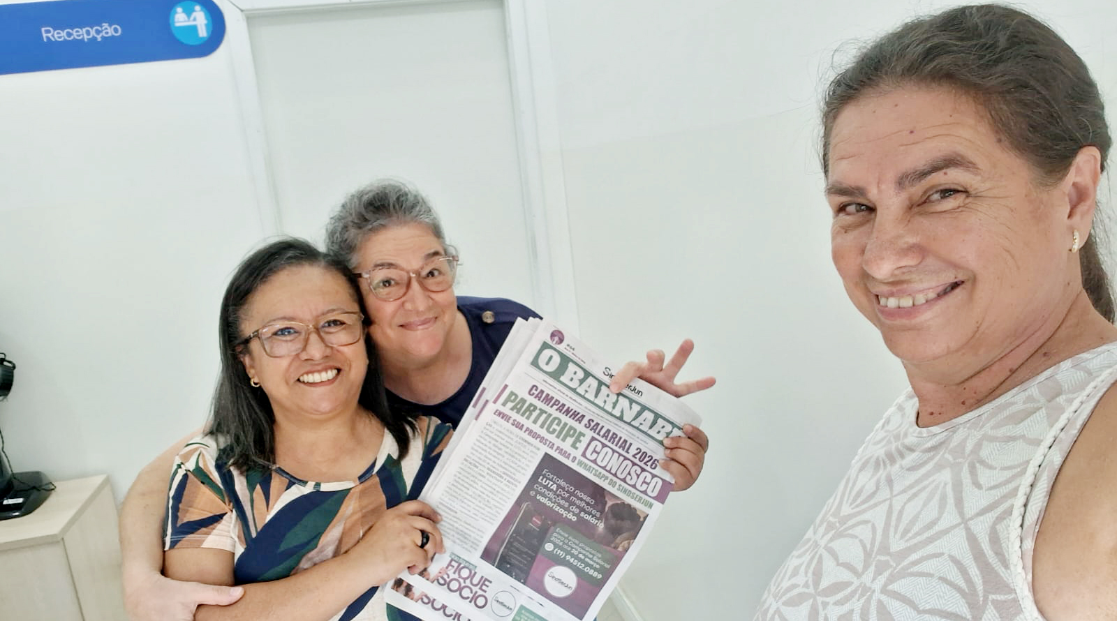 Os diretores Márcio Campos, Sandra Aparecida e Angela Paiva continuam diariamente na base com a divulgação da nova edição do jornal “O Barnabé”. Os dirigentes têm sido muito bem recebidos, sempre com sorriso no rosto e muita gratidão por parte dos Servidores. Nosso objetivo é cada vez mais ampliar este contato direto e humano, com informação de qualidade aos trabalhadores de Jundiaí.